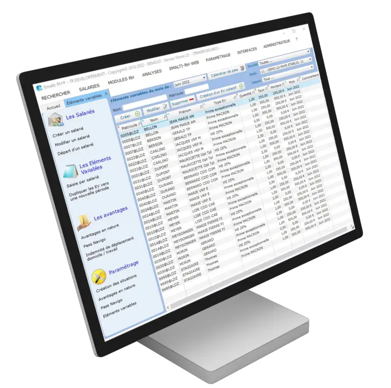 Emalti-rh » les modules RH » Gestion au quotidien » Éléments variables